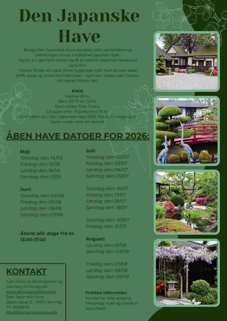 Overnatter du i Den Japanske Have, er der gratis adgang til haven og du kan frit benytte haven under hele dit ophold.