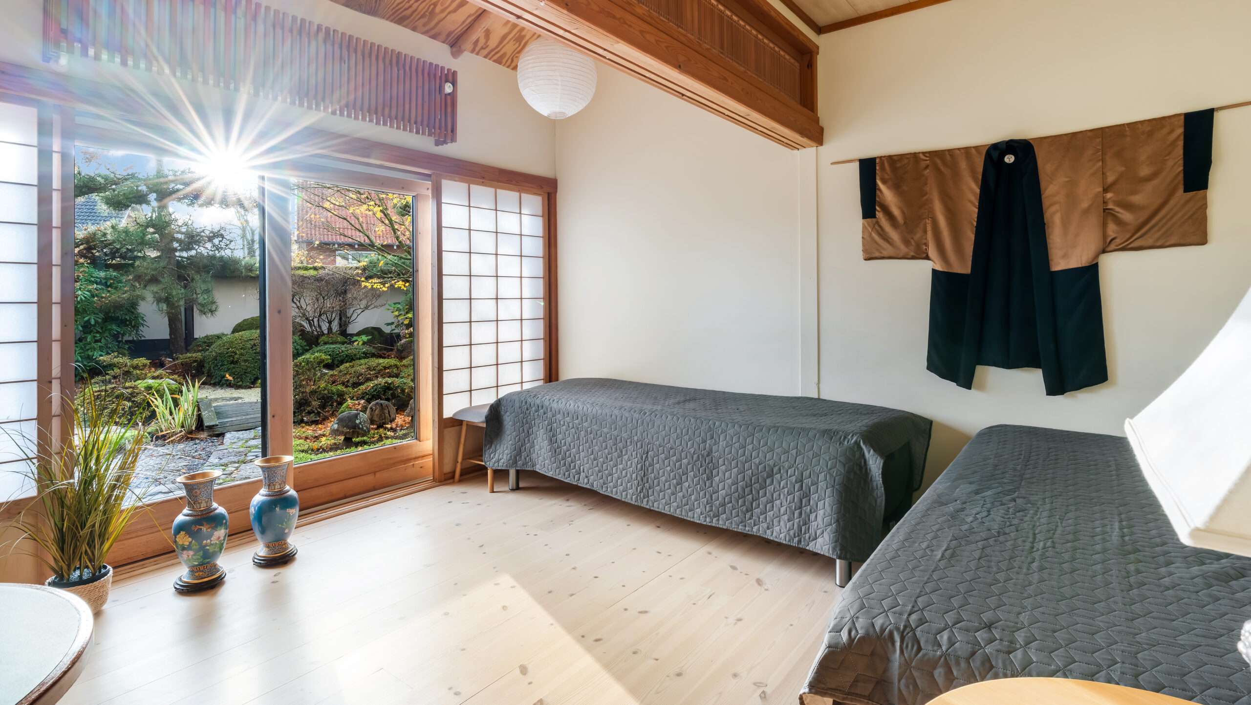 Der er mulighed for at benytte den smukke Japanske Have – gå blandt beroligende lyde af utallige små bække, vandfald, farvestrålende planter og smukke skulpturer. Der er mange steder, hvor man kan sidde og fordybe sig og meditere eller bare nyde denne perle. Hele Den Japanske Have er på 3000 kvm.