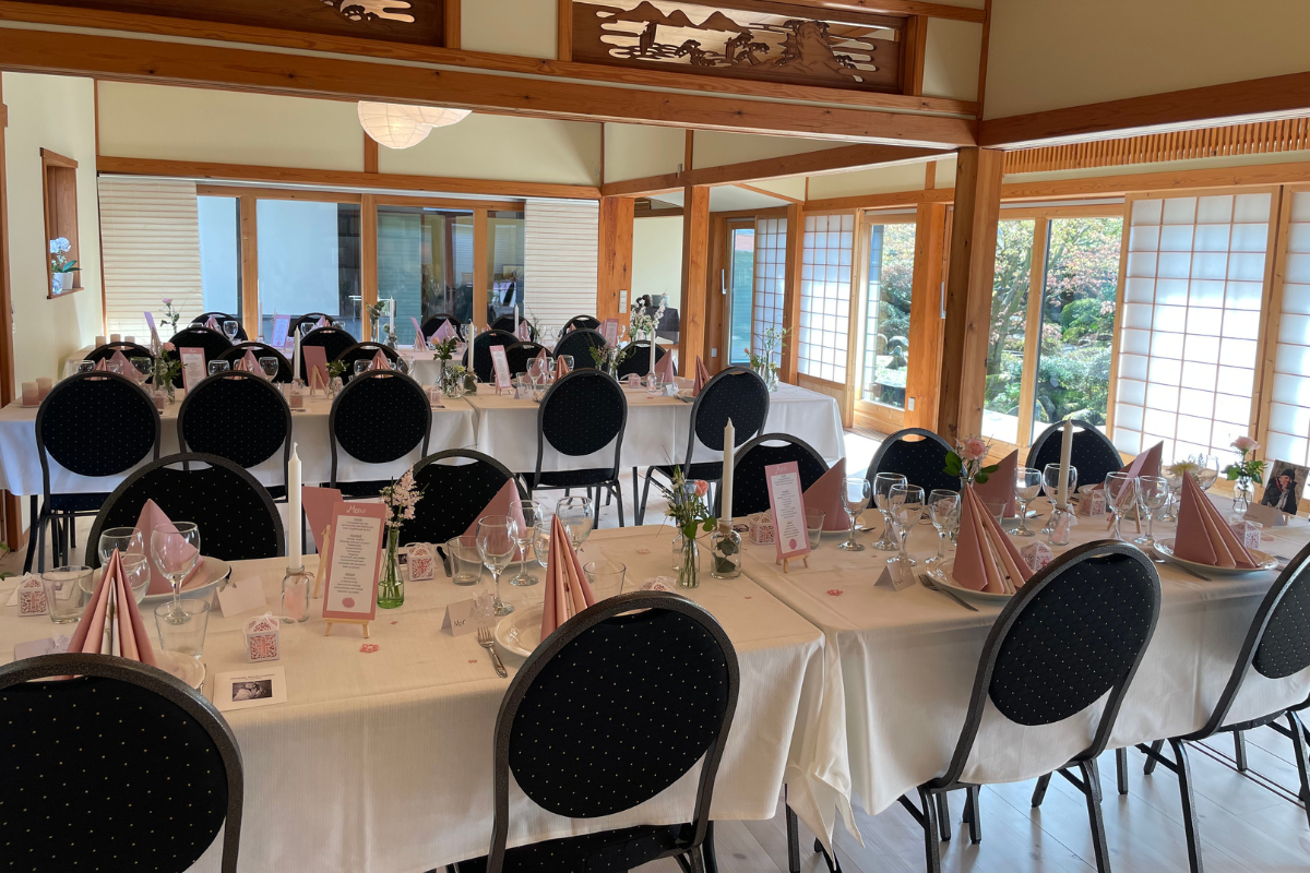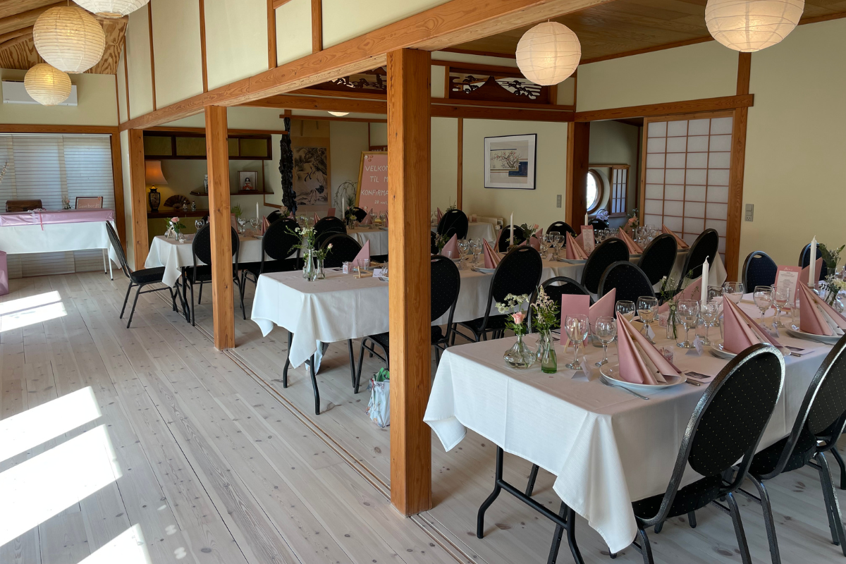 Hos den Japanske Have tilbyder vi festlokaler til leje. Du kan ikke alene holde din fest hos os, men der er også plads til, at dine gæster kan overnatte. Så skal de ikke tænke på transport, og du kan nyde et skønt morgenmåltid sammen med dem dagen derpå.